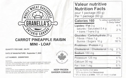 Mini Loaf Granella's 96x60g Carrot, Pineapple & Raisin