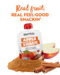 Martin's Apple Sauce Snack is made with their own grown apples and No Artificial Anything™. Contains no added sugar, no water, no ascorbic acid, and comes in a convenient, recloseable pouch, perfect for on-the-go!