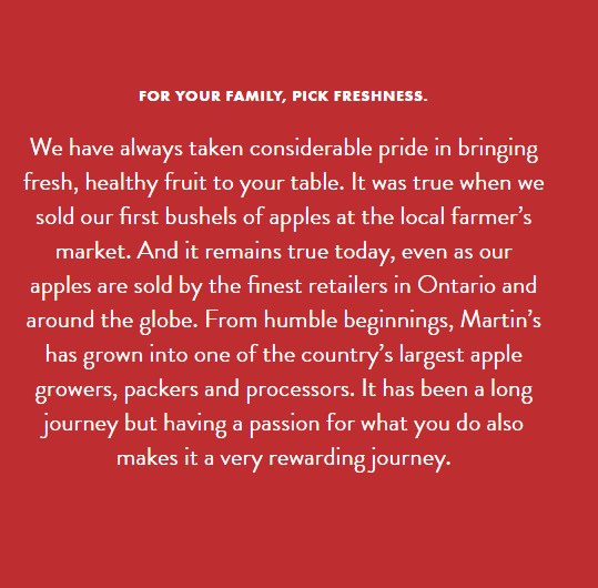 Martin's Apple is a family company based in Elmira, Ontario and have been farming in our Province for over 200 years.
