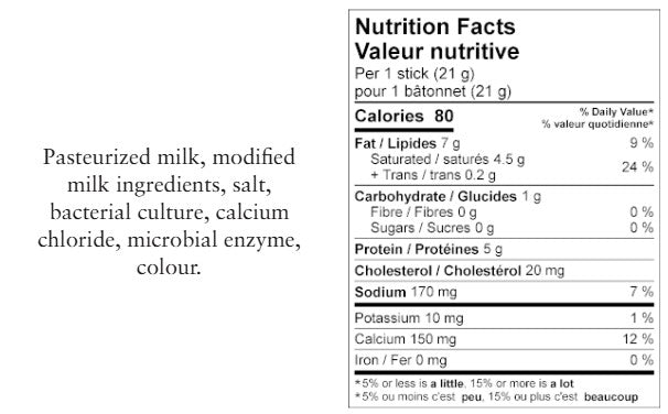 Convenient and nutritious, our cheese sticks and real cheese snacks are made from natural cheese and are a source of protein and calcium. Enjoy them at home or pack them in your lunch to snack on-the-go. Each cheese stick and real cheese snack is individually wrapped and available in various delicious flavours for the perfect snack. A delicious blend of yellow and white Cheddar cheeses individually wrapped for convenience and on-the-go. Each Marble Cheddar Cheese stick is a source of calcium, high in protein and 80 calories each. Since 1902, our master cheesemakers have passed along their knowledge and expertise to bring you Cheddar cheese at its best. Our natural cheeses are made from fresh milk and will taste delicious in your recipes. We believe the best dairy products begin with milk from healthy, well cared for animals. We pledge to continue to promote best practices in dairy animal care.